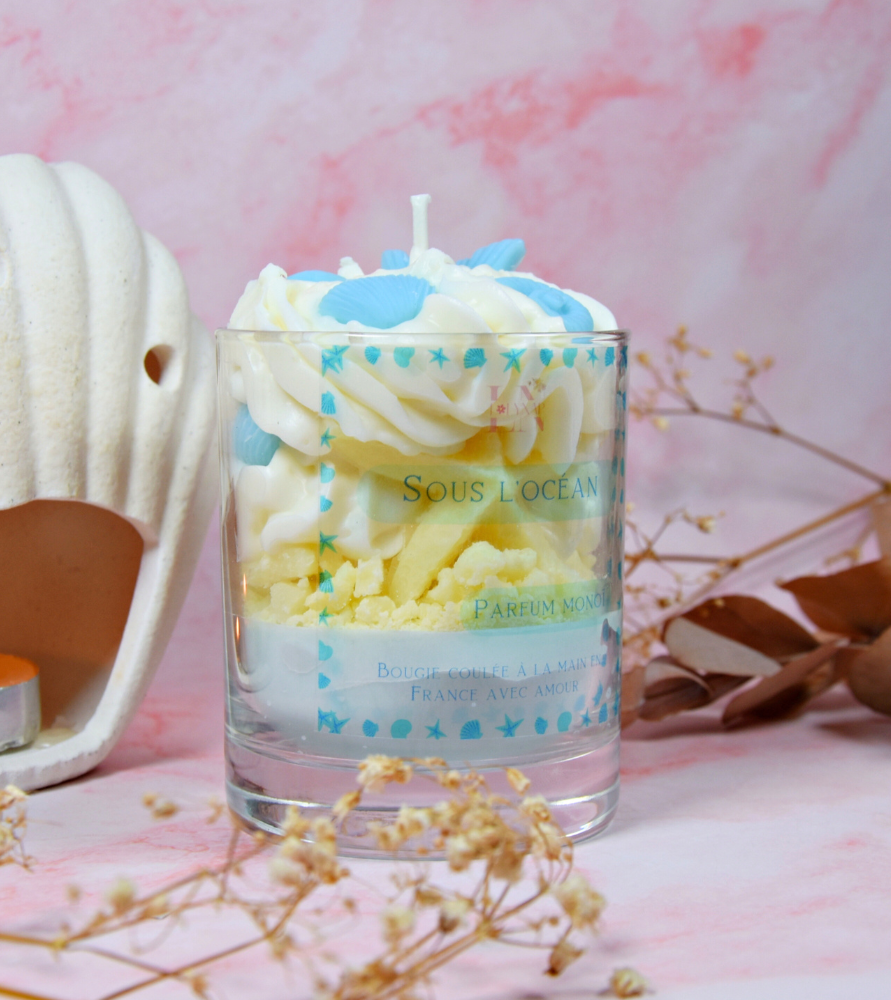 - Les bougies et les fondants sont coulés à la main. Les couleurs et le positionnement des fondants peuvent alors légèrement varier d’une bougie à une autre.