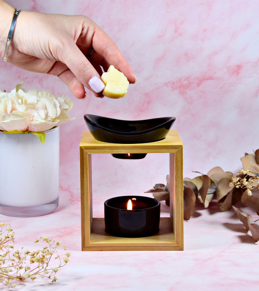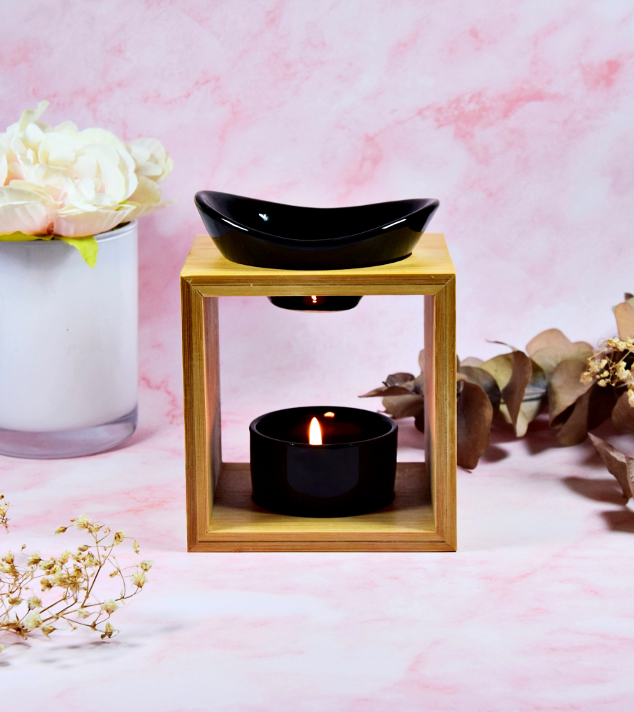 - Design moderne : La combinaison de bois et de noir confère à ce brûle-parfum un aspect contemporain qui s'harmonise avec différents styles de décoration