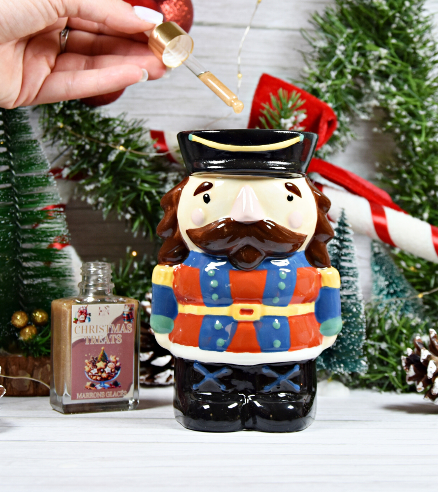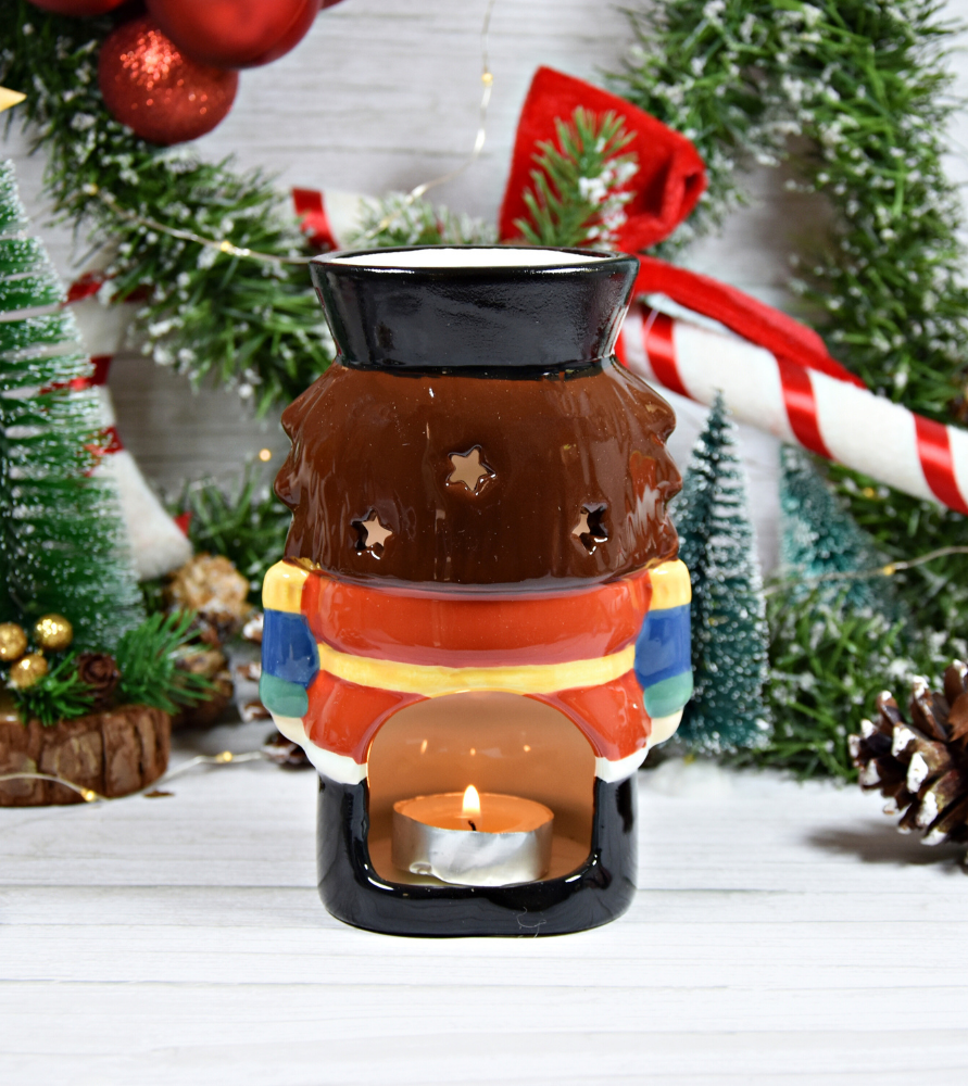 Ce brûleur est parfait pour accueillir vos fondants ou liquides parfumés : il diffuse lentement les senteurs, créant une atmosphère chaleureuse et réconfortante. Son design détaillé, avec son uniforme rouge et bleu et sa grande moustache, fait de lui un objet à la fois décoratif et fonctionnel, idéal pour célébrer la magie des fêtes !