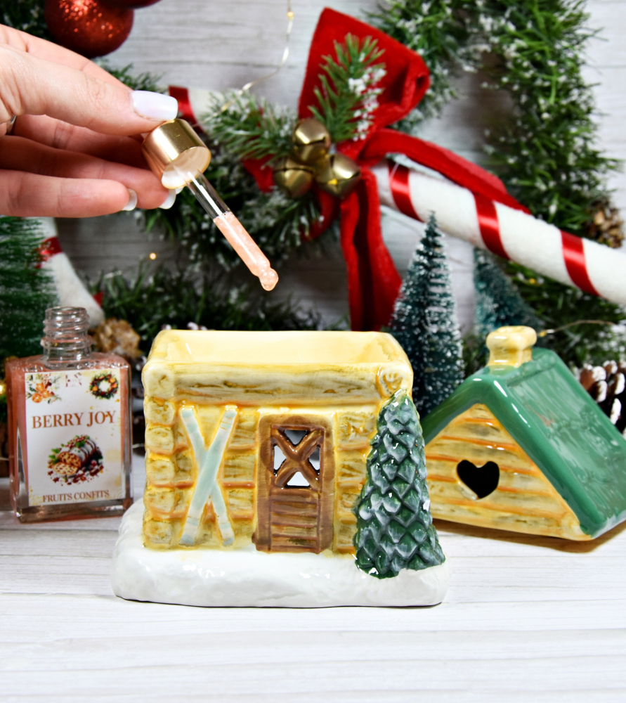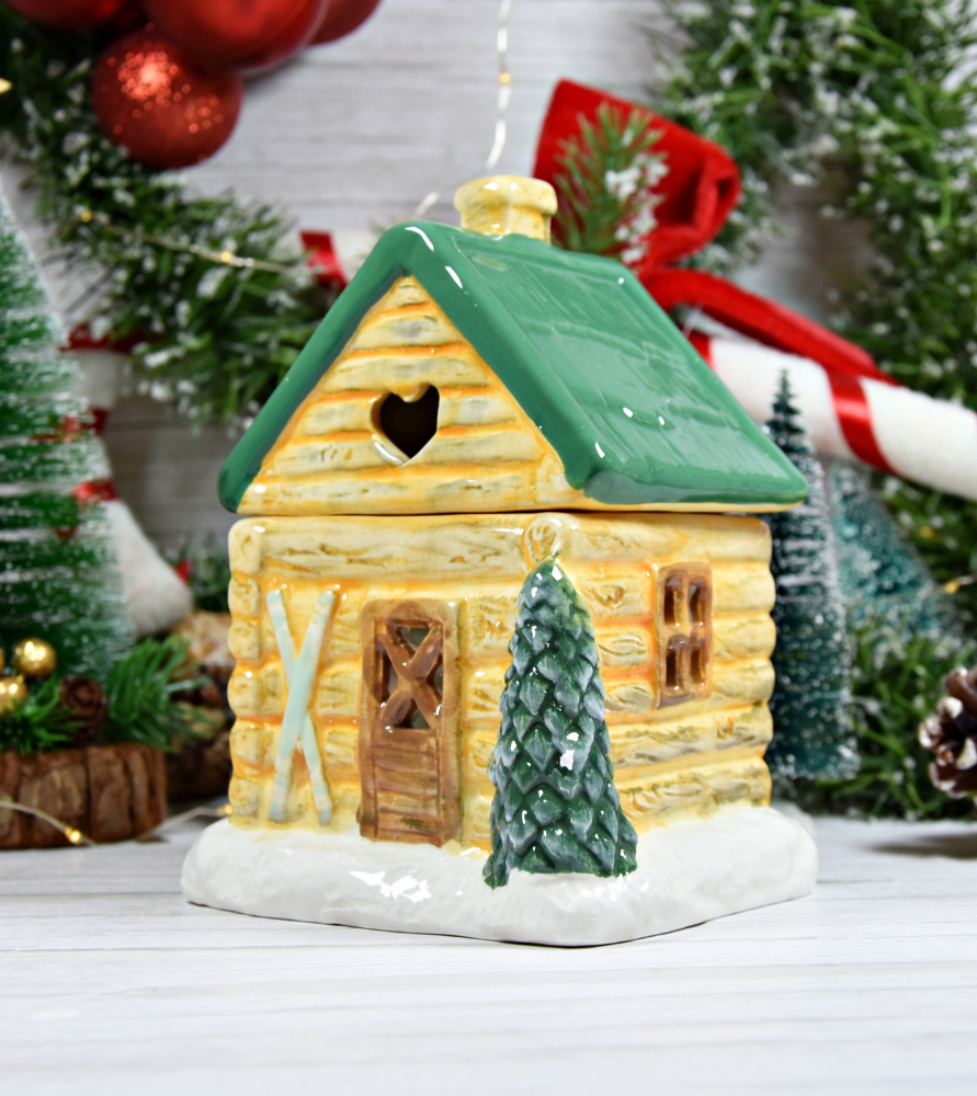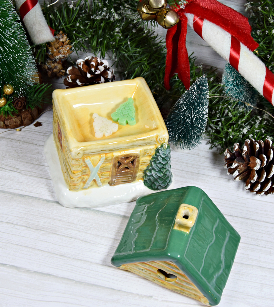 Apportez une touche de magie et de douceur à votre intérieur avec ce brûleur Chalet. Réalisé en céramique, il séduit par ses détails minutieux : un petit sapin délicatement sculpté, une porte façon chalet en bois et un toit amovible vert sapin. Son design évoque instantanément l'esprit des fêtes et la chaleur d'un foyer d'hiver...