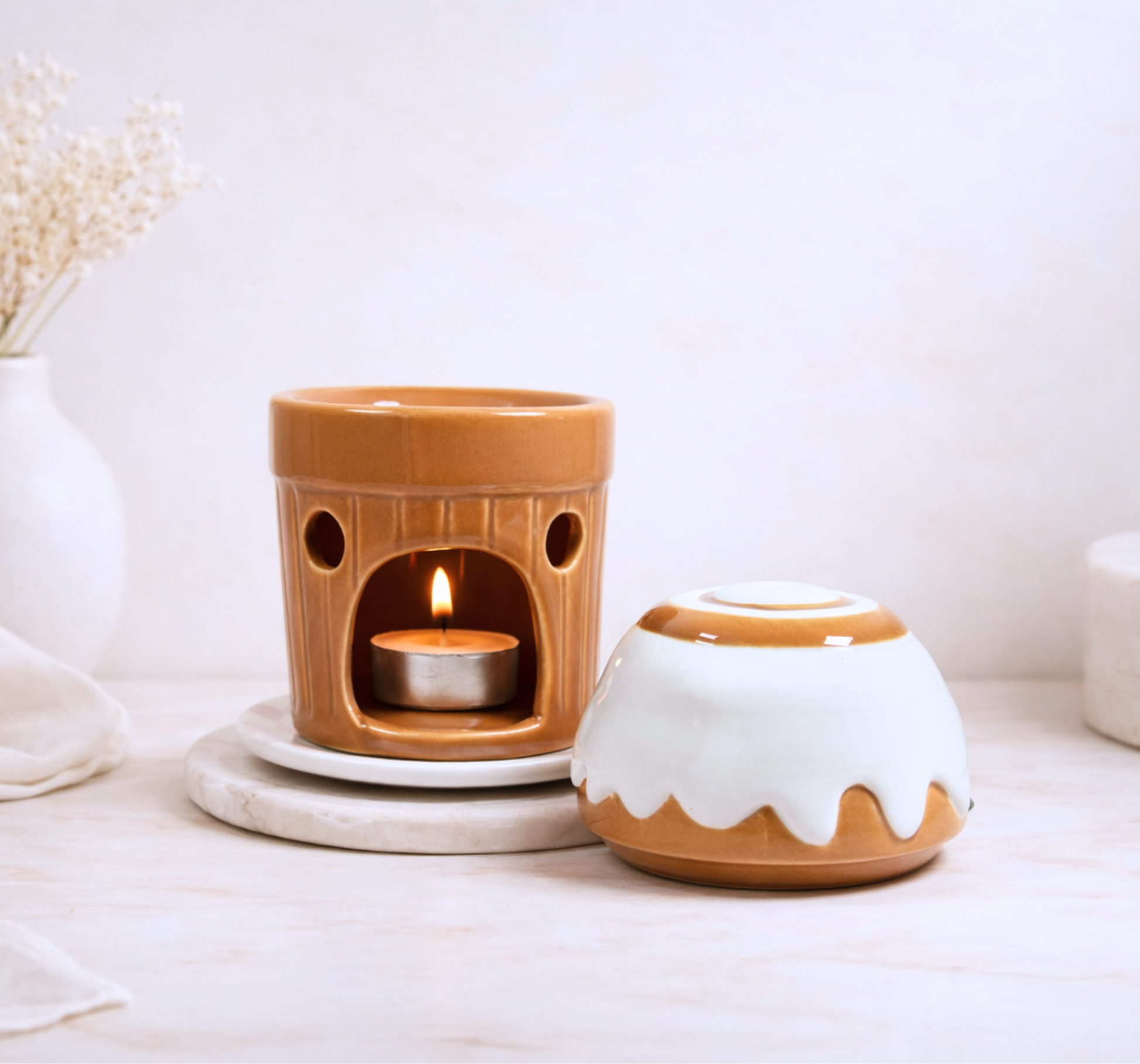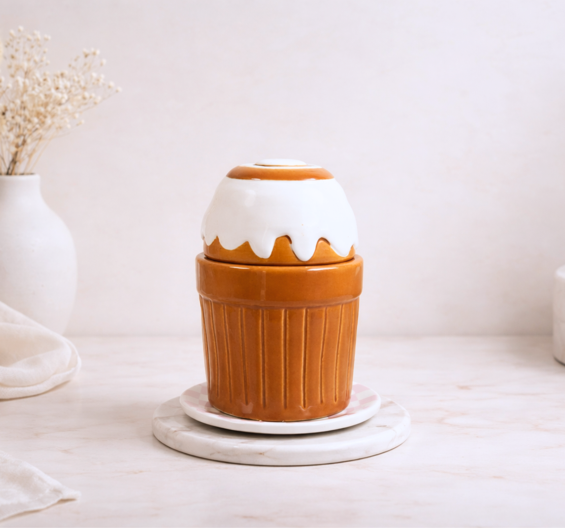 Craquez pour ce brûle-parfum Cinnamon Roll, un modèle aussi gourmand qu'original inspiré des célèbres pâtisseries roulées. Avec sa teinte marron chaleureuse et son couvercle effet glaçage, il apporte une touche cosy et réconfortante à votre intérieur.