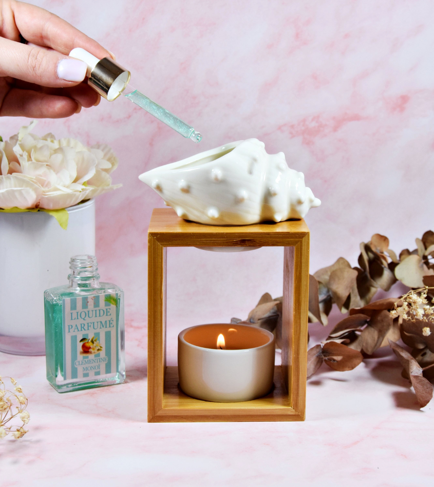 - Matériaux naturels : Fabriqué en bois de qualité et un orné d'un grand coquillage, ce brûle-parfum offre une esthétique naturelle et authentique.