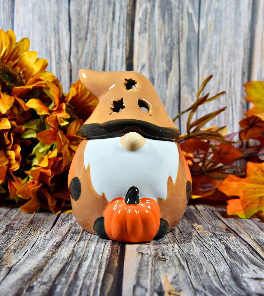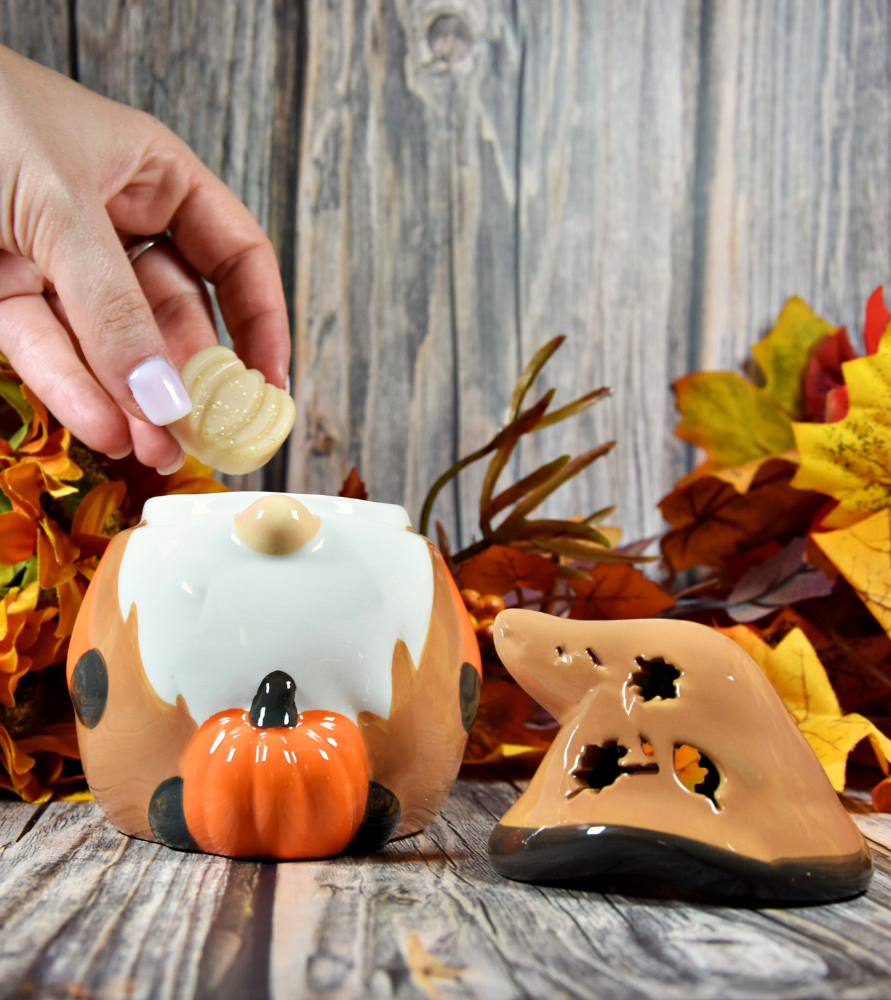 Ajoutez une touche chaleureuse et féerique à votre intérieur ce brûle-parfum représentant un adorable gnome automnal tenant une citrouille. Avec son design original et ses couleurs automnales, il s'intègre parfaitement dans une déco de saison et devient une pièce maîtresse pour l'automne.
